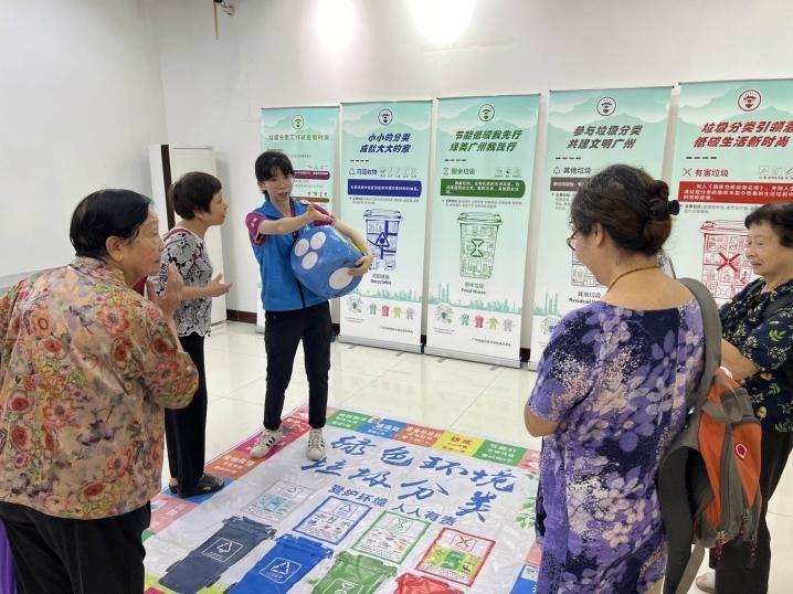 现场布置了绿植和插花体验摊位,邀请社区巾帼护卫队等妇女代表带领大家体验家庭蔬菜种植、施肥,并展示了实用、有趣的插花技巧手法。还布置了垃圾分类互动游戏摊位,就“果皮属于什么垃圾?”“大骨头属于什么垃圾?”向居民提问,现场氛围愉悦又火热,志愿者还布置了4类垃圾桶让居民感受投放体验,学习和掌握垃圾类别及投放要求,切实提高日常分类水平。