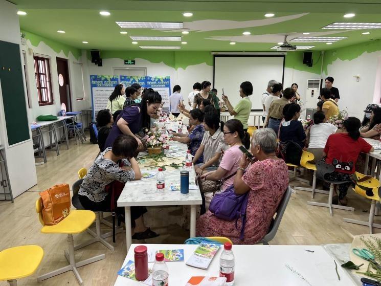 在组织方精心安排下,活动采用“2+3”方式布置和开展,即专业培训 + 互动游戏2类形式,蔬菜种植 + 插花技巧 + 垃圾分类3类主题。活动现场气氛热闹、节奏紧凑,现场派发了70多份自制的绿美生活宣传手册,向大家介绍环境保护的重要性、生态文明建设的成就和生活中的环保小常识、垃圾分类小技巧。