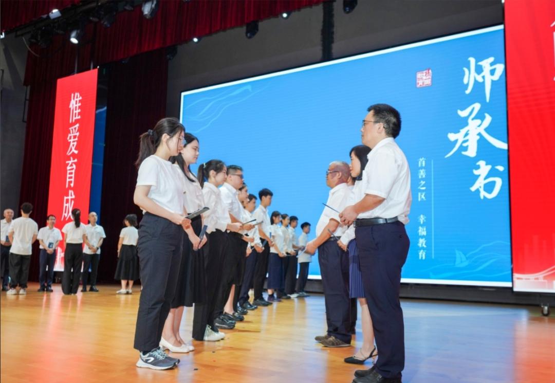 在这场主题为“师徒结对‘传帮带’,青蓝同心‘大先生’”的拜师活动中,新教师们向107位福田区优秀校长、教师代表呈递拜师帖,表达他们对教育事业的热忱和对未来职业生涯的期待;师父们也用心且工整地写下回帖,不仅寄予了殷切期望,也为新教师们的人生新阶段送上深切祝福。他们承诺将毫无保留地传授经验,引领新教师持续探索、不断进步。据悉,师徒结对“传帮带”是福田区推动教师队伍高质量发展的重要举措,也是教育传承的优良传统,这一举措不仅让优秀教师作为师父传授经验,也鼓励年轻教师分享自己的新技术、新方法,实现双向交流、共同进步。