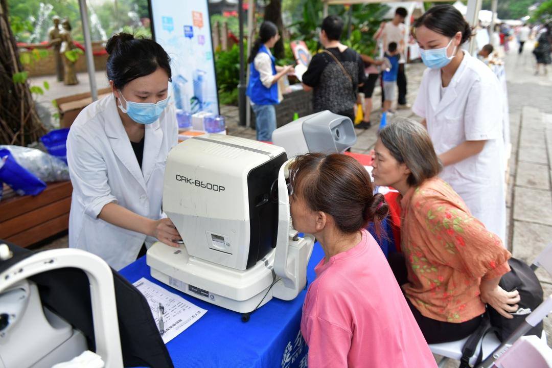 在集市上看名医无需挂号,广东省第二中医院、广州市中医院、黄埔区中医院专家现场义诊,为市民免费开方把脉,实现家门口看名中医,让老百姓有“医”靠。