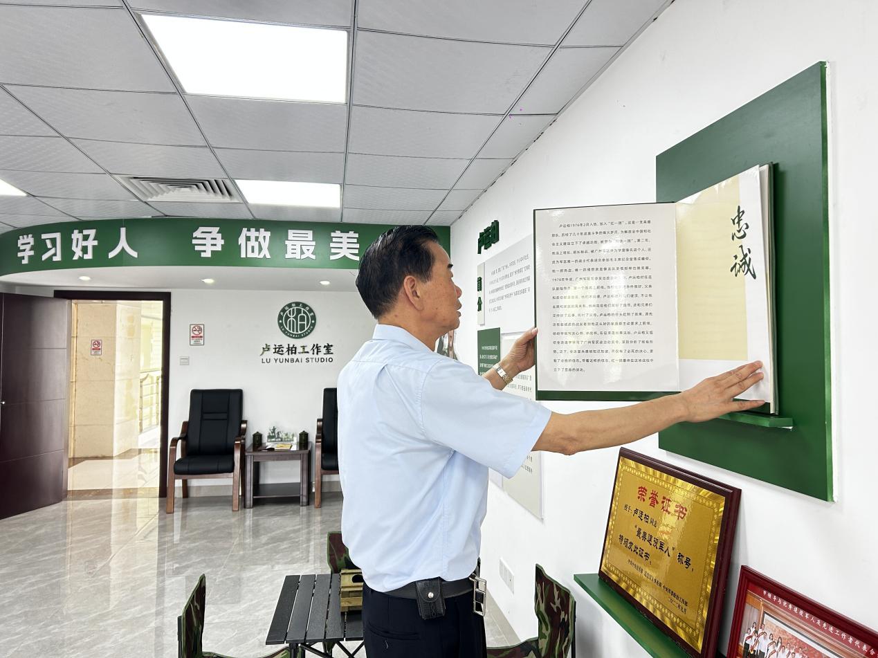 退休后的卢运柏比上班还要忙。2018年,永和街道退役军人服务站成立,作为一名土生土长的永和禾丰人,卢运柏被聘为站点的思想政治指导员。2019年底,“永和街东纵精神传承连”正式成立,卢运柏将更多精力放在了解老兵生活需求、烈士和烈属家庭现状上。在卢运柏以身作则与循循善诱的带领下,黄埔区永和街的退役军人积极投入永和地区的基层治理,活跃在矛盾纠纷调解、社会秩序维护、交通安全劝导、红色文化宣讲、帮扶解困等志愿服务的岗位上,累计开展十余类志愿服务数百场次,服务群众超万人。