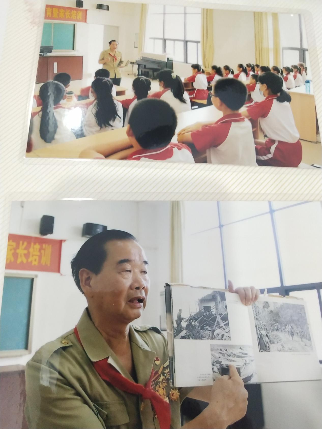 卢运柏进校园讲述曾经的战斗故事。受访者供图