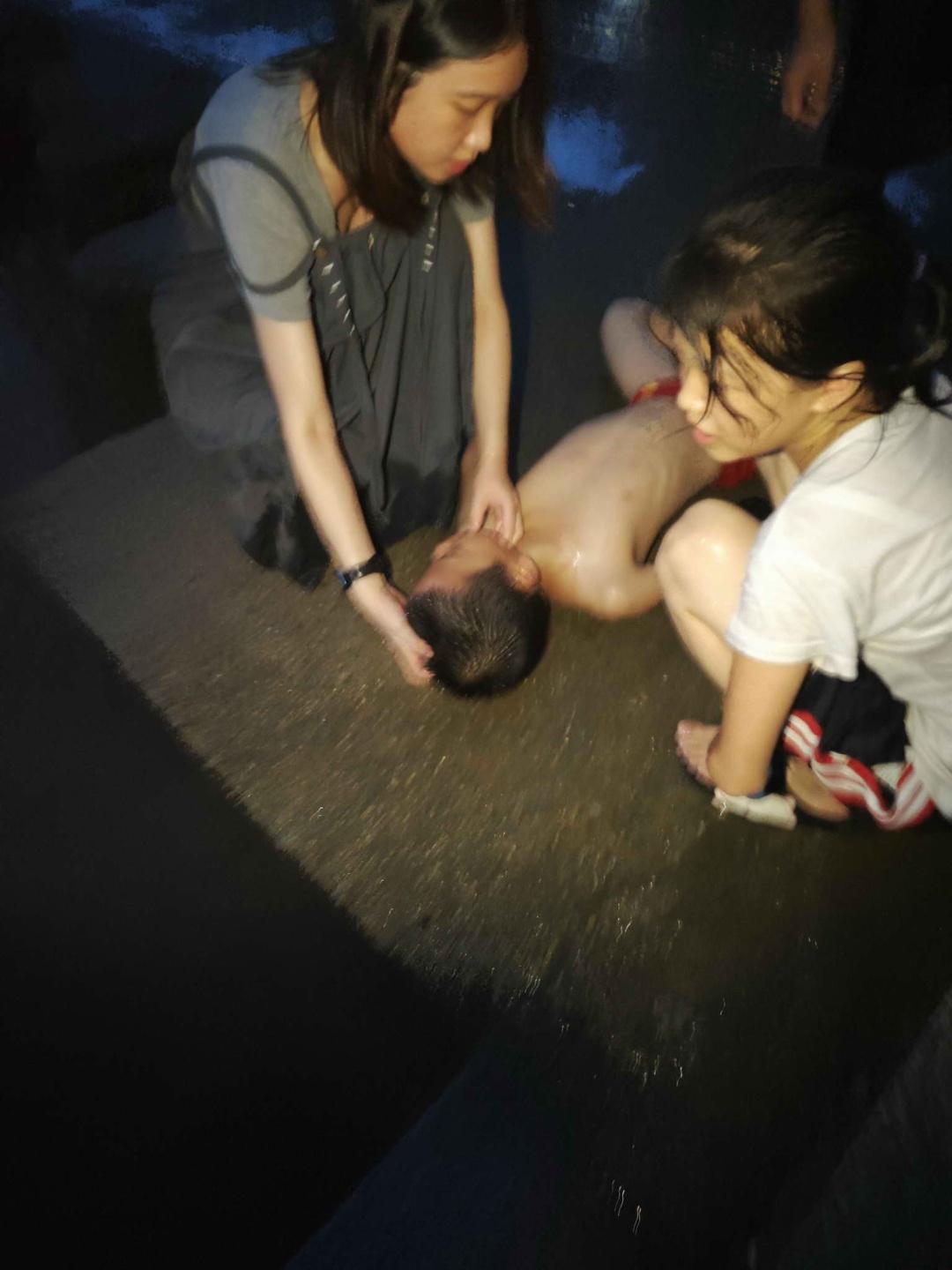 “快,把他放地下,做心肺复苏!”8月10日傍晚,韶关市始兴县城南镇卫生院的护理师钟颖和丈夫骑着摩托车路过沈所河边时,刚好看到一名焦急万分的男子抱着一名男孩走向岸边。男孩四肢下垂、浑身无力,疑似溺水。