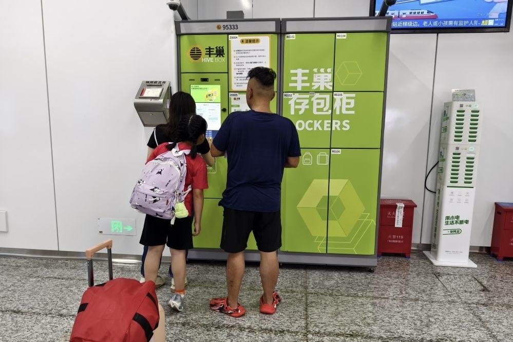 乘客如果需要存放物品,要用手机扫寄存柜上面的二维码,输入验证码,选择哪种规格的柜子(如大柜、中柜、小柜)、存放时间,完成付费,即可开启柜门,完成操作。