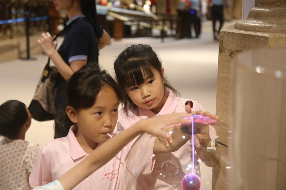 广东科学中心内有科学性、知识性、趣味性相结合的展览内容和互动装置。同学们通过亲自动手操作实验,了解有趣的科学现象背后的物理、化学等学科原理。“很多只在课本上学过的科学知识在这里都变得有趣起来,这是一场很好的科学体验之旅!”学员许可欣说。