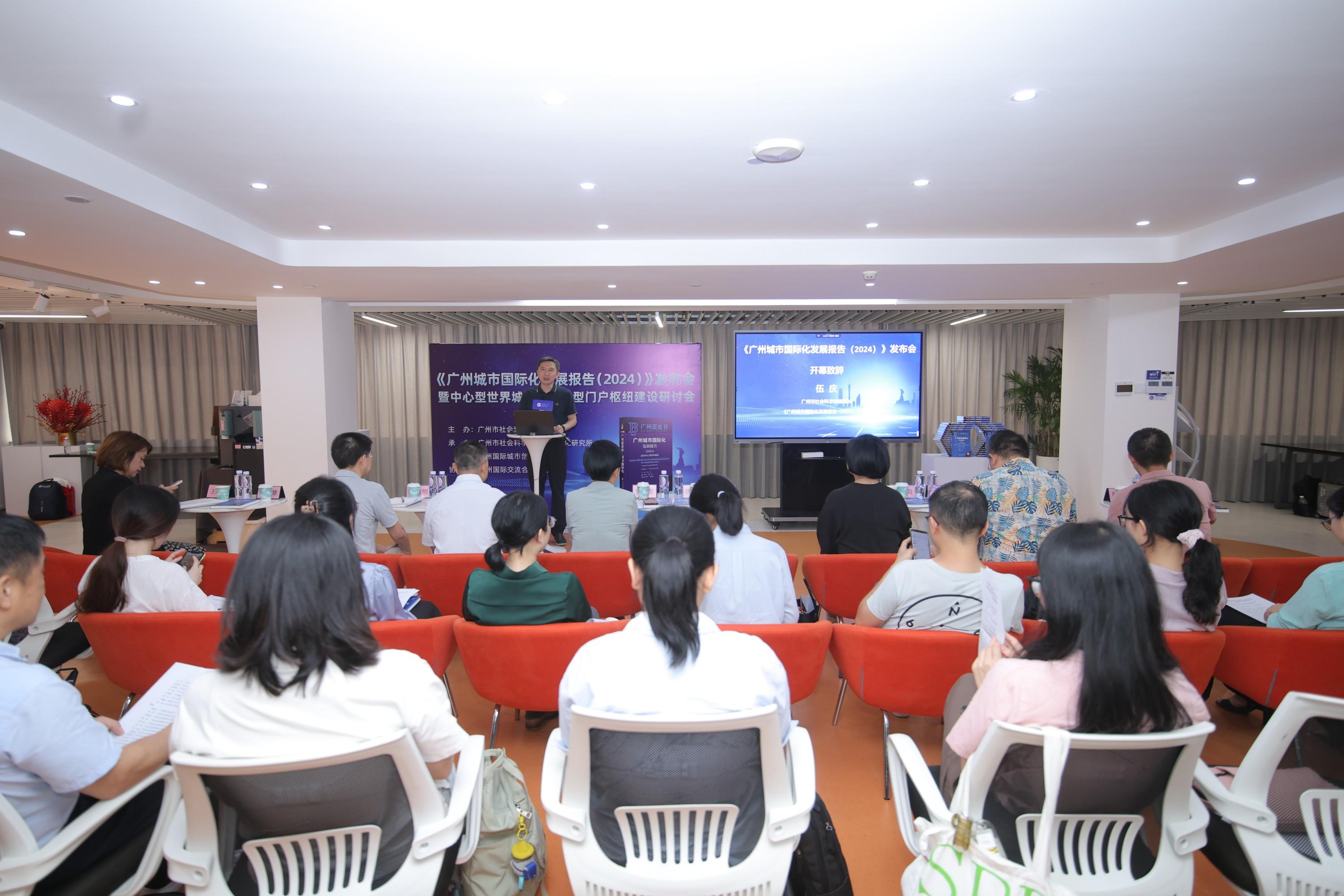 广州市社会科学院副院长、《广州城市国际化发展报告(2024)》主编伍庆作开幕致辞,简要介绍了广州市社会科学院蓝皮书的定位与功能,并提出,广州市社会科学院城市国际化研究所团队经验丰富,希望团队围绕广州城市化发展的关键问题进行深入研究,进一步提升《广州城市国际化发展报告》的影响力。