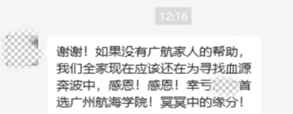 王同学妈妈说,“如果没有广航家人的帮助,我们全家现在还应该在为寻找血源奔波中”,“在社会爱心人士和广航家人的鼎力支持下,短短两天时间就筹足了一个疗程的血量”。