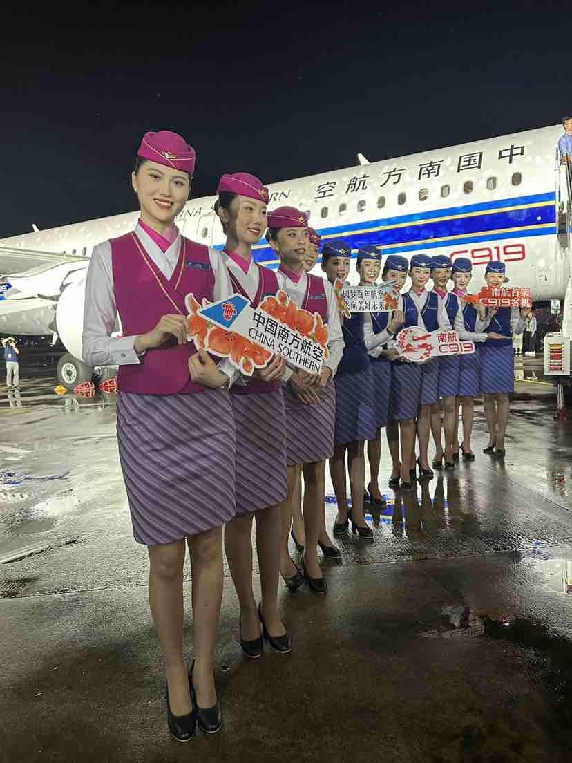 “国产大飞机承载着一代又一代中国民航人的梦想,能够成为南航首批C919乘务员,我倍感光荣。未来我们要不断提升安全、服务技能,打造C919精品航线,为旅客带来更好的乘机体验。相信国产大飞机在南航一定会越飞越好!”南航C919首批乘务员庄晶晶说道。