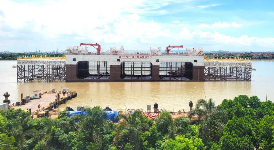 据悉,“鑫环1号”海洋牧场养殖平台由广州市顺海造船有限公司制造,是国内最大的半潜式海洋牧场养殖平台。该平台长135米、宽30米、高20.5米,配置30人的住舱、24个育苗池、冷库、中央空调、洗网平台等,还配置了100千瓦光伏太阳能绿色能源,平台自持力可达30天。