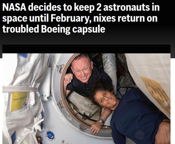 与此同时,两名美国宇航员则将继续留在轨道实验室,预计将于2025年2月乘坐SpaceX的“龙”飞船返回地球。按计划,两名宇航员原本应于6月14日返回地球,但却遭遇推进器故障和氦气泄漏等一系列问题,返航日期一再推迟。