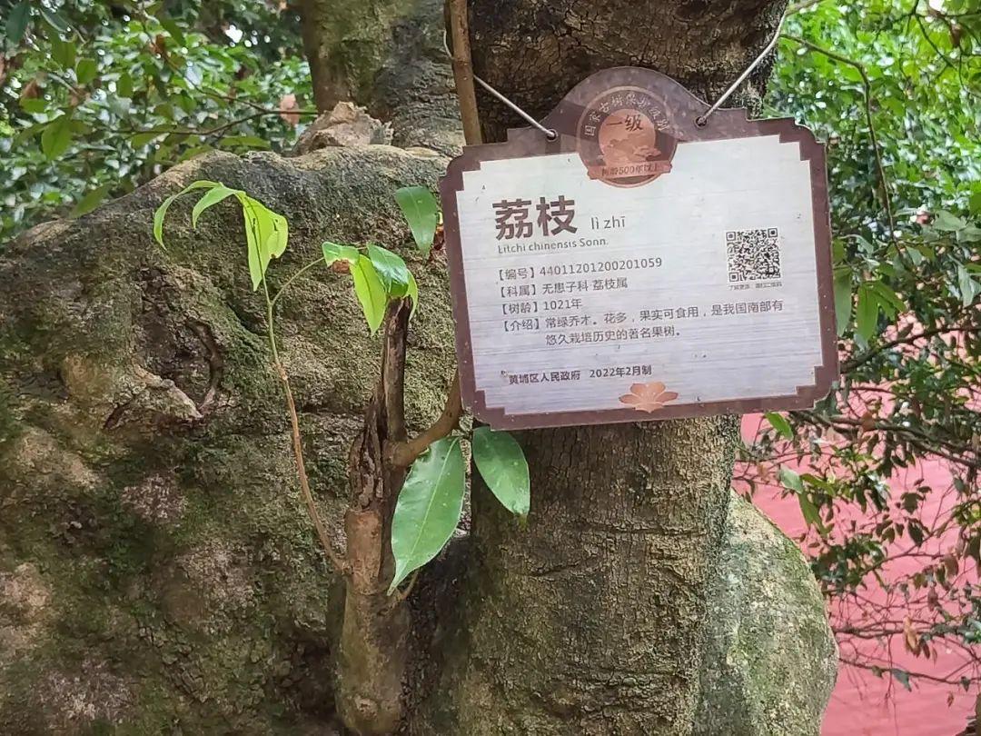 如今,这棵千年古荔仍留有那场大雪留下的创痕——主树干中空,由一层坚硬的表皮接入地下,其根部另一侧新生的枝丫依旧绿叶繁茂。虽已历经千年沧桑,这棵荔枝树至今还能结出“桂味”和“山枝”两种荔枝。