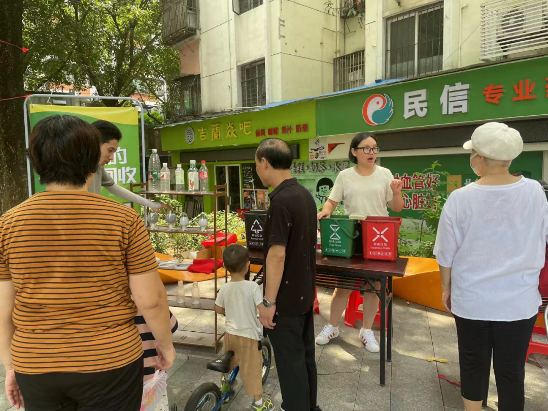 8月29日上午,登峰街道城市管理办公室在下塘西路82号的口袋公园举办了生活垃圾分类资源回收宣传活动。在活动现场,工作人员向居民详细介绍了废矿泉水瓶的再生利用过程,展示了如何通过垃圾分类实现垃圾减量,并将分类后的垃圾循环再生利用,真正实现废物的资源化。