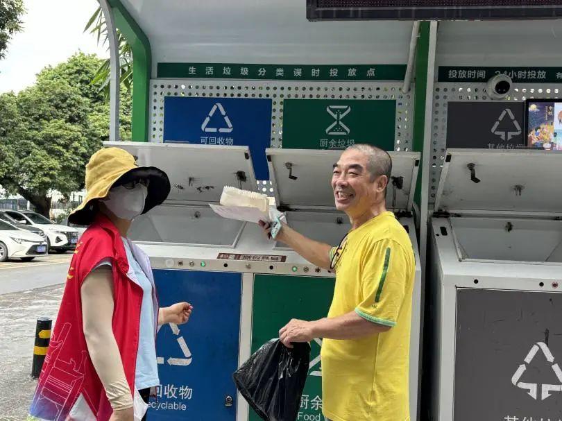 除了引导居民投放垃圾,对垃圾分类意识较为薄弱的居民,“星光”垃圾分类志愿服务队员结合垃圾分类宣传单,围绕垃圾分类的意义及正确分类方法等知识进行宣讲,用耐心细致的劝导方式,让大家逐渐养成良好的垃圾分类习惯。
