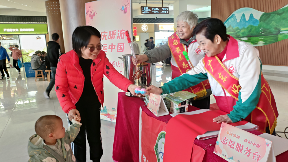 梁少英(右1)在高速公路服务区参加2024肇庆市“暖流行动”