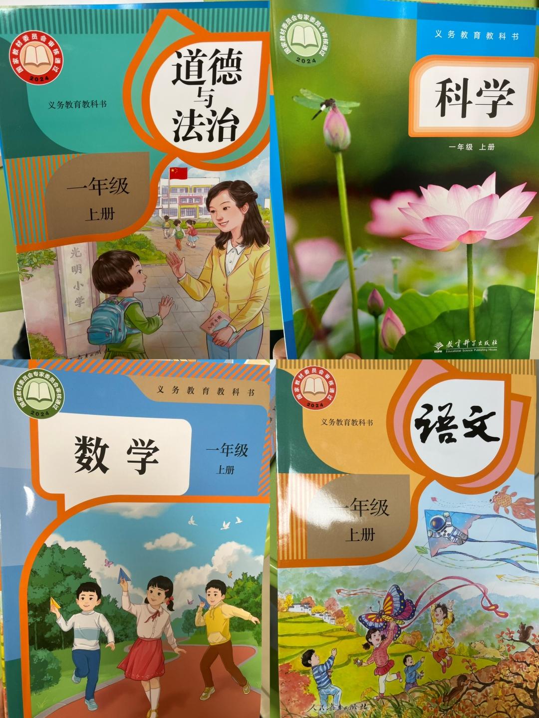 新学期,义务教育起始年级学生用上了“新教材”。在广州市海珠区海联路小学,记者看到,一年级学生的《道德与法治》《语文》《科学》《数学》等教材封面都注明“国家教材委员会专家委员会审核通过2024”字样。根据教育部办公厅今年7月25日发布的关于印发《2024年义务教育国家课程教学用书目录(根据2022年版课程标准修订)》的通知,根据2022年版义务教育课程标准修订的教材将于2024年秋季学期陆续投入使用。广州义务教育各学科起始年级亦将在这个新学期启用新教材。