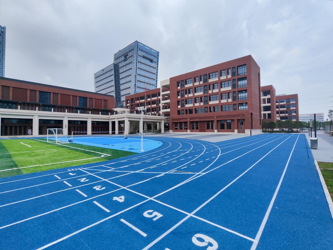 该校区主要由教学空间、阅读空间、美育空间、科创中心、康体中心、休闲娱乐中心等构成。教学园区主要包括体育馆、教学楼、综合楼、室外标准运动场等建筑和场地,其中体育馆共2层,设有室内篮球场以及室内游泳池;教学楼共5层,设有图书馆、教室、心理咨询室、教师办公室等功能场室;综合楼共5层,设有食堂、报告厅、艺术音乐教室、美术室、史地科课室、生物化学物理实验室等场室。