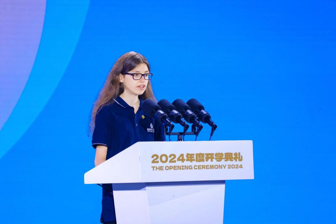 来自卢森堡的Ann Cloos同学代表国际生新生发言。她毕业于剑桥大学,先后获得自然科学学士学位和神经科学硕士学位。她谈到,选择来港科大(广州)攻读博士学位,是被这所大学的创新基因以及自由开放的理念吸引。“来到一个陌生的国度生活,会给我带来一些挑战,但我不想因为未知而恐惧退缩。无论是从科学研究还是文化探索的角度来看,在香港科技大学(广州)攻读博士学位,都将是一次丰富多彩、令人大开眼界的经历,我已迫不及待要踏上这段冒险之旅。”