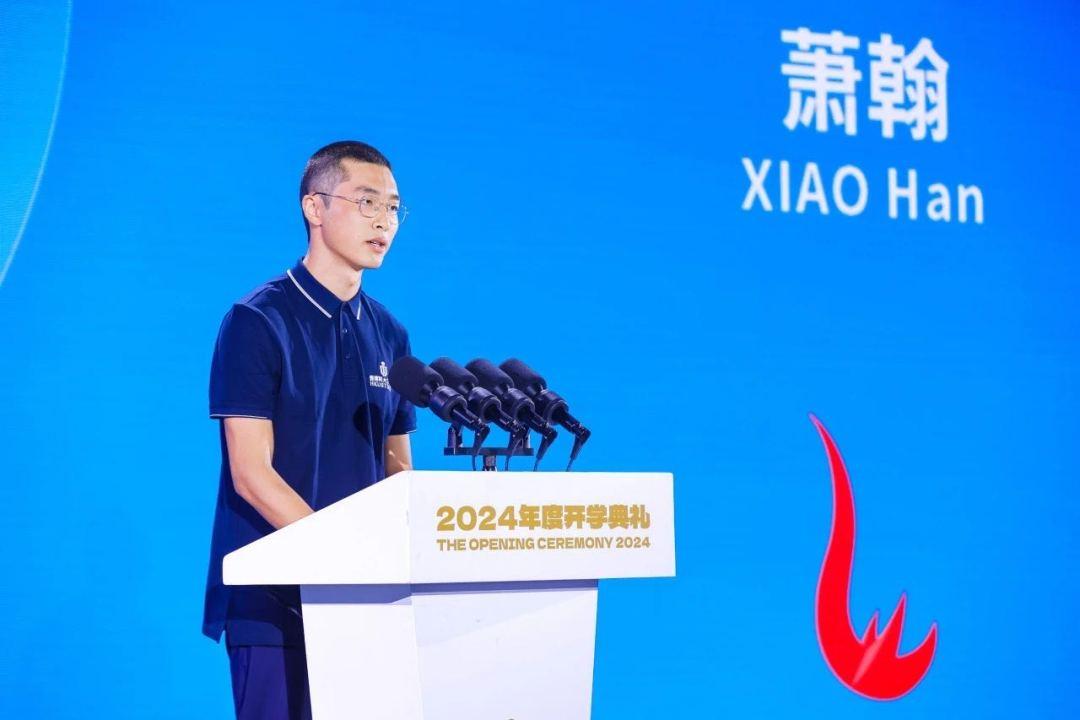 来自四川的萧翰同学代表本科新生发言。他回顾了自己提前三周到校,参加港科大(广州)国际夏令营PLACE(Playshop for Language and Cultural Exchange)的经历。“我坚信,我们从何处来、如何到来并不重要,重要的是,当我们走出这所大学校门时,能成为什么样的人。”他号召同学们,要满怀热情和信心,不负大学四年时光,共创美好未来。