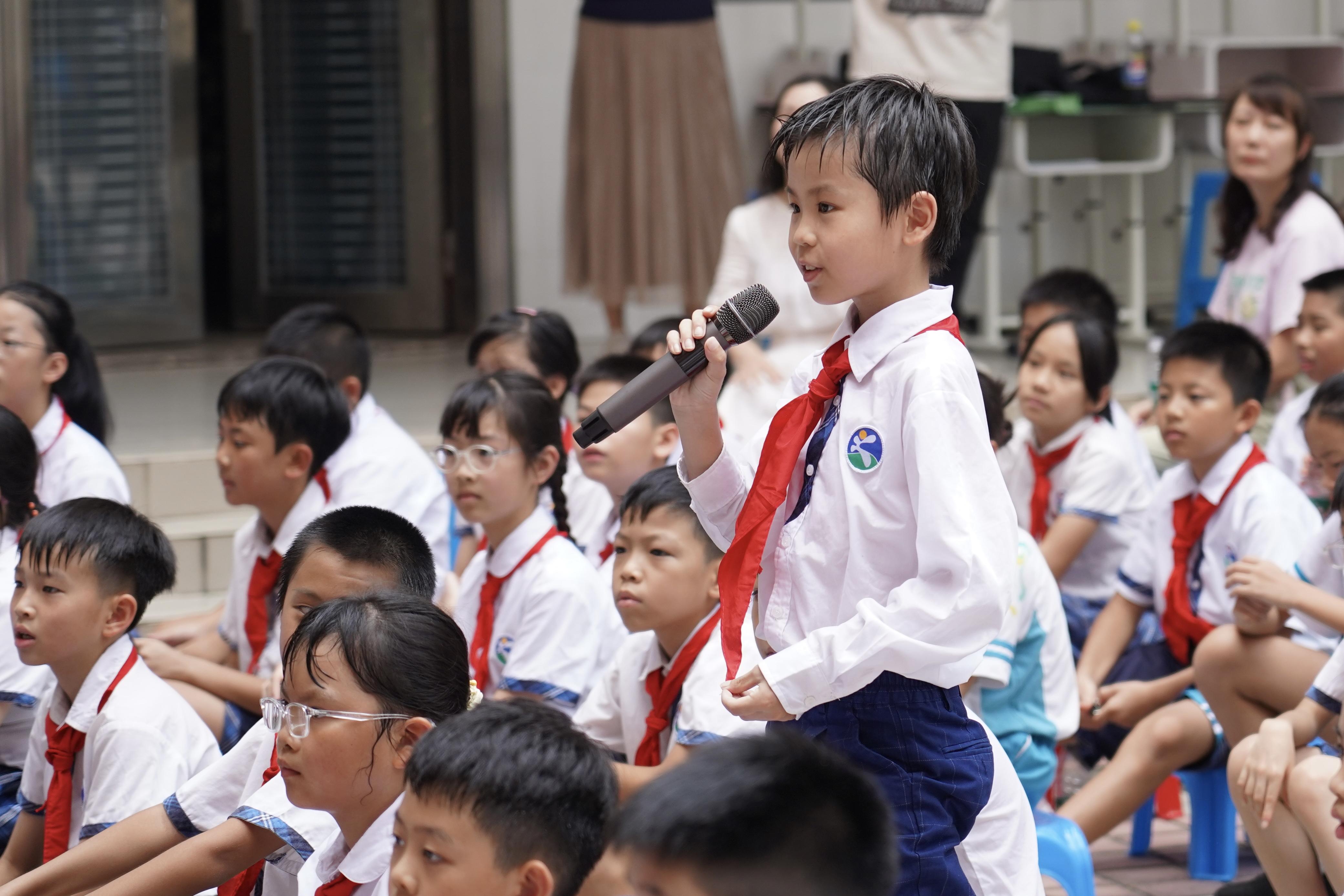 来自广州市版权保护中心的知识产权师韦佳佳老师以“版权守护阅读”为主题,以同学们喜爱的漫画、读本为例介绍版权、作品的定义和意义,讲述非法出版物带来的危害,分享在生活中识别分辨非法出版物的方法,引导同学们树立保护版权意识,远离非法出版物和有害信息;三年3班的张浚宸、陆羿岚、曾语桐、谷芯怡等同学带来三句半节目《扫黄打非战鼓擂》,通过新颖有趣的演绎、朗朗上口的语言,生动展示树立版权意识、参与“扫黄打非”的重要性;六年2班的冼炜琪同学带来《谨防青少年掉入网络消费陷阱》主题分享,她结合时下互联网中的消费类型,讲述青少年在网络世界中可能会遇到的消费陷阱和潜在风险,提醒大家在网络世界中注意保护自己、文明上网。