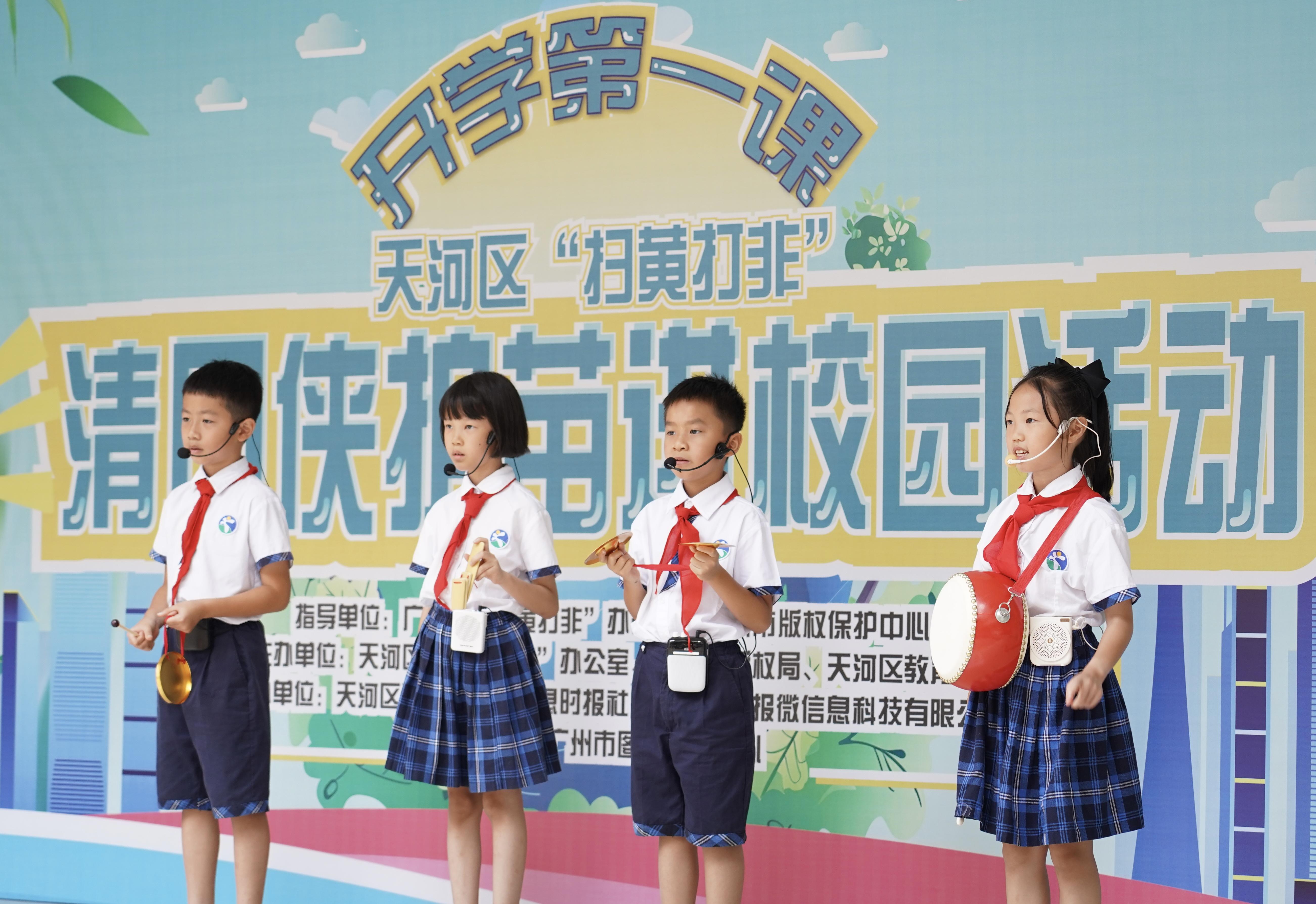 “开学第一课——天河区‘扫黄打非’清风侠护苗进校园”活动在冼村小学开展。
