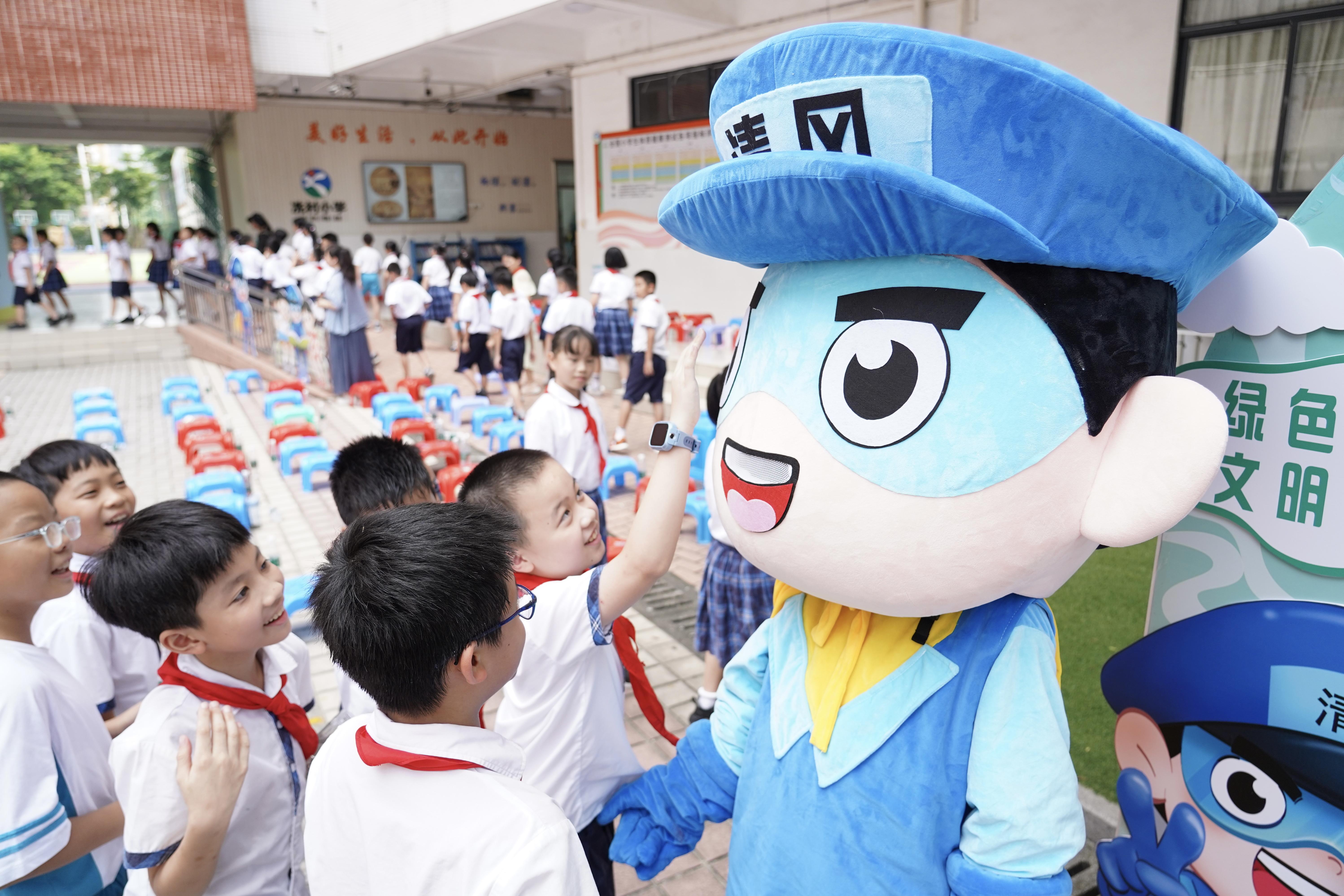 同学们和“清风侠”打卡互动。