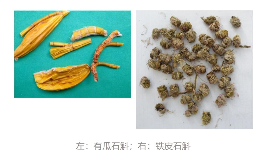 市面上有时当作石斛卖的有瓜石斛,则是另外一种东西,是金石斛属而非石斛属植物,在外形、功用上差别较大,注意不要混淆。