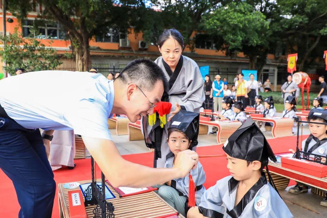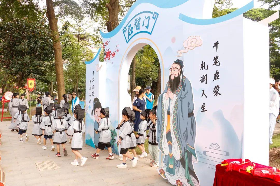 开笔礼俗称“破蒙”,是中国传统文化中学童开始识字习礼的一种启蒙教育形式,被称为人生四大礼之一。今年的开笔礼包括正衣冠、过启智门、盥手净心、朱砂启智、启蒙描红、孝亲尊师、经典诵读、击鼓明志、走进士桥、观文塔等仪式,每个环节都蕴含着深厚的文化底蕴和教育意义。