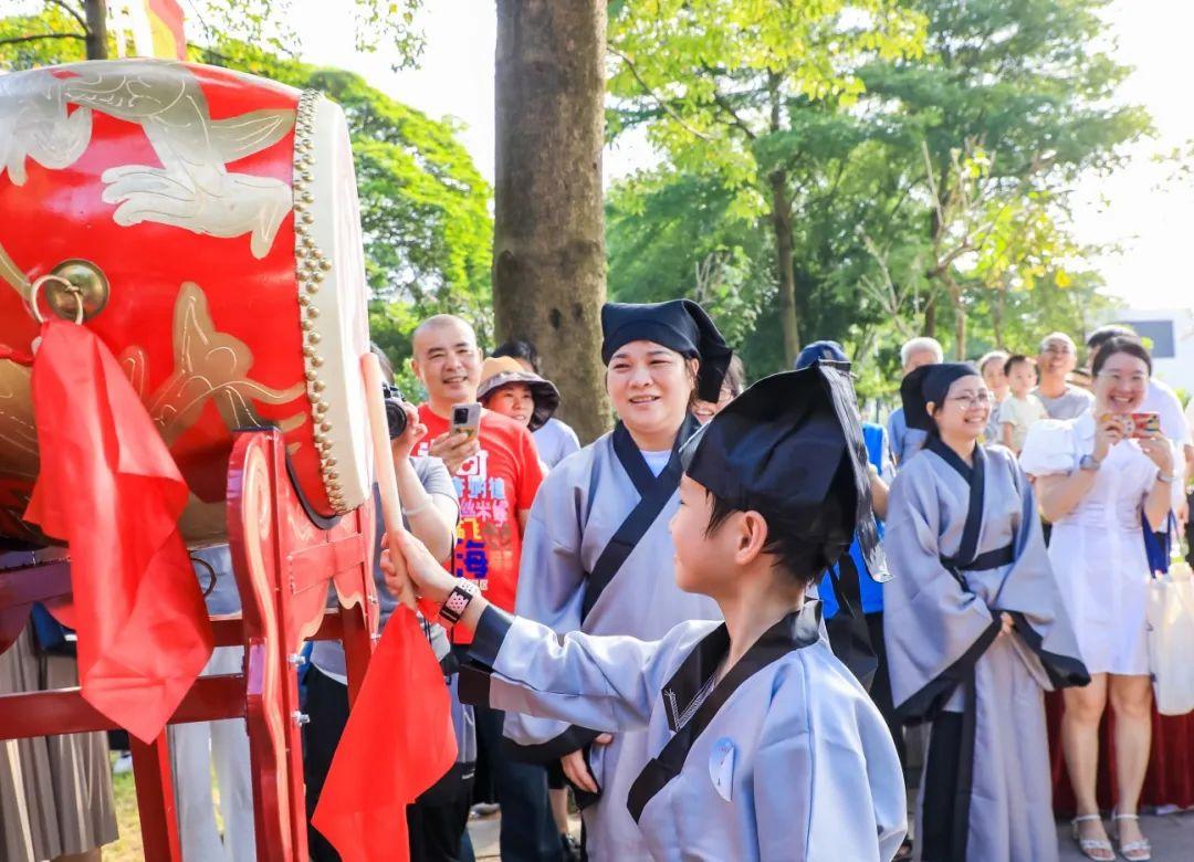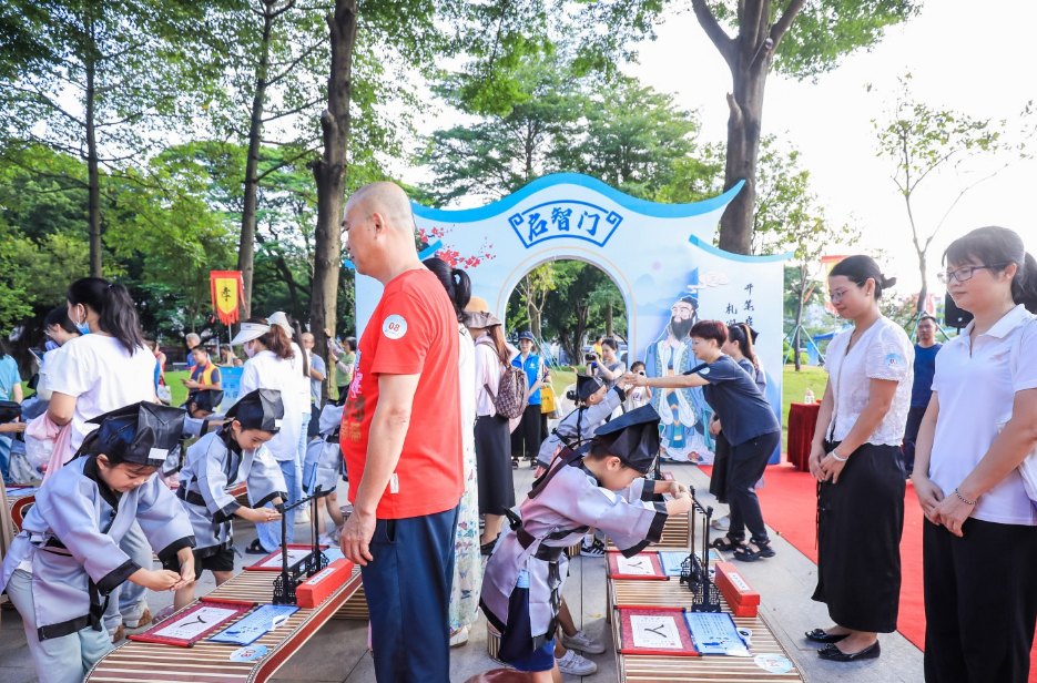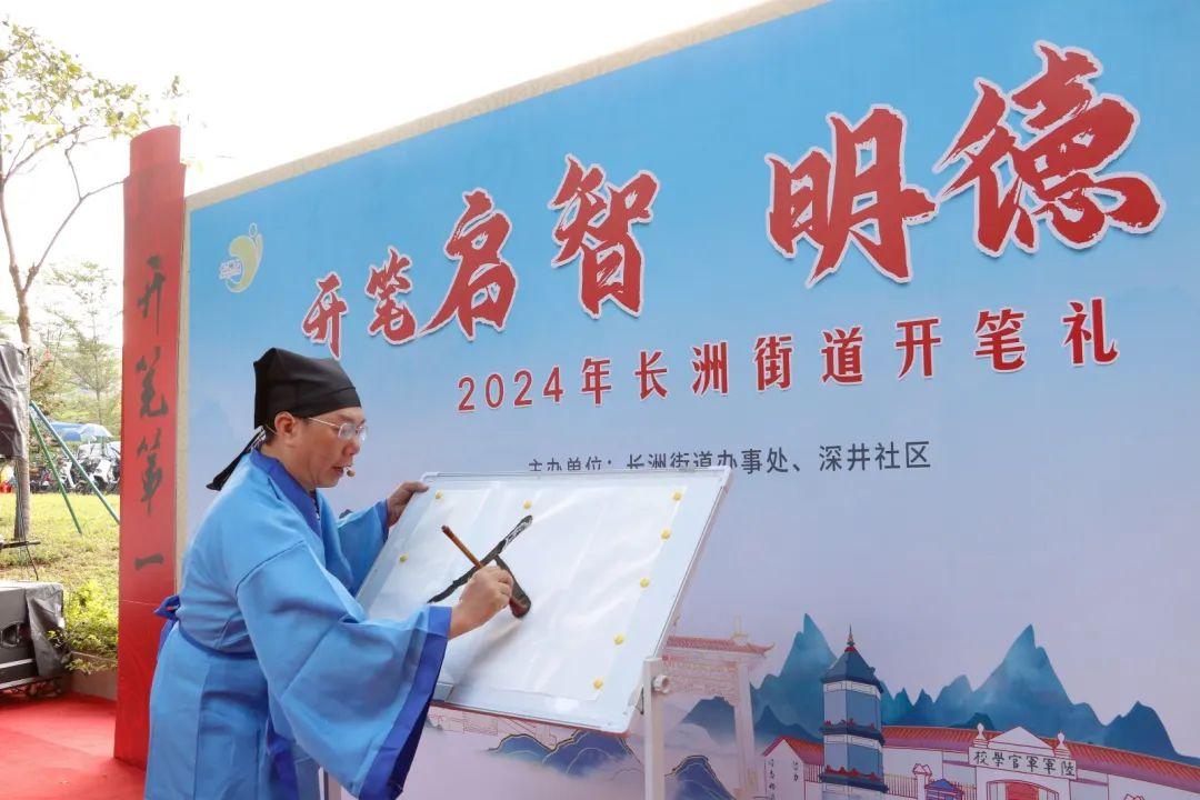 9月1日上午,“开笔启智 明德习礼”长洲街道开笔礼在深井古村文塔公园举行。