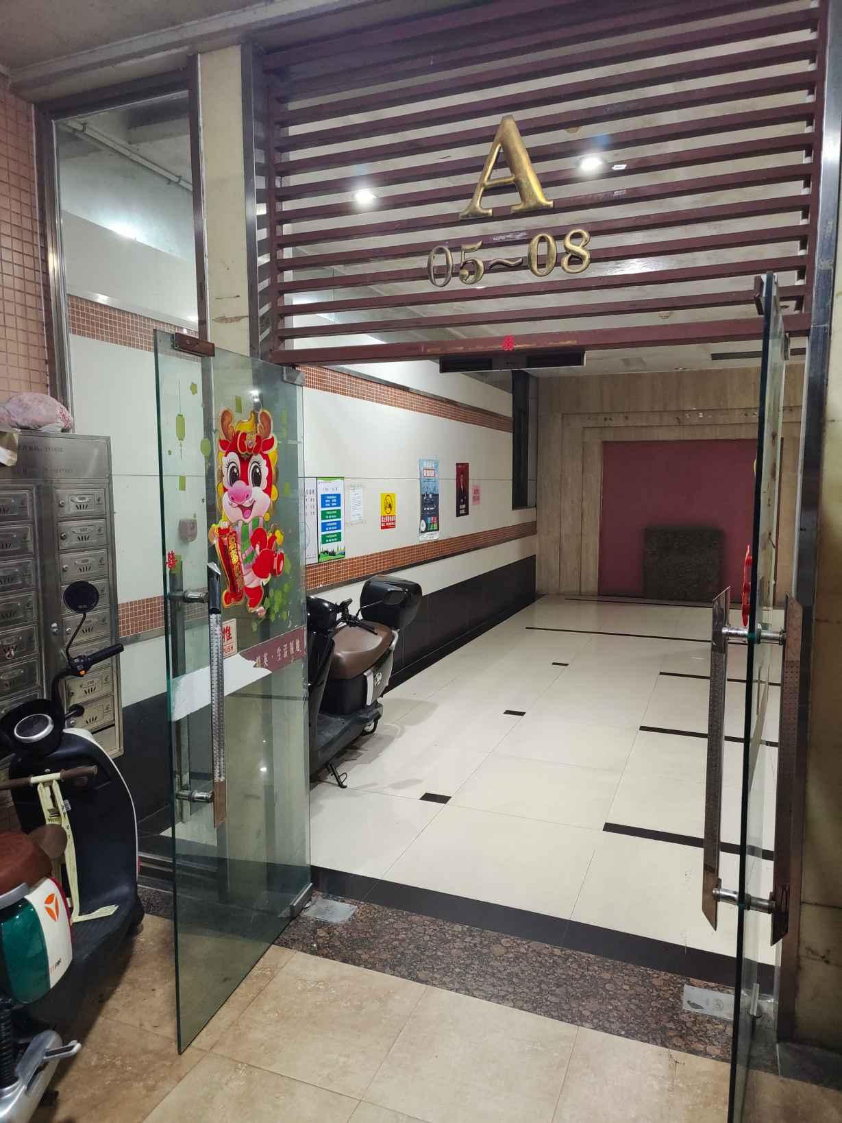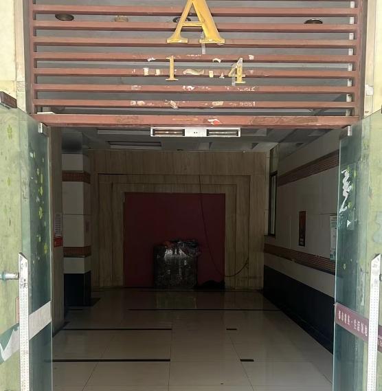 整改前,电动车停放在小区大堂内及外侧两旁。花城街道供图