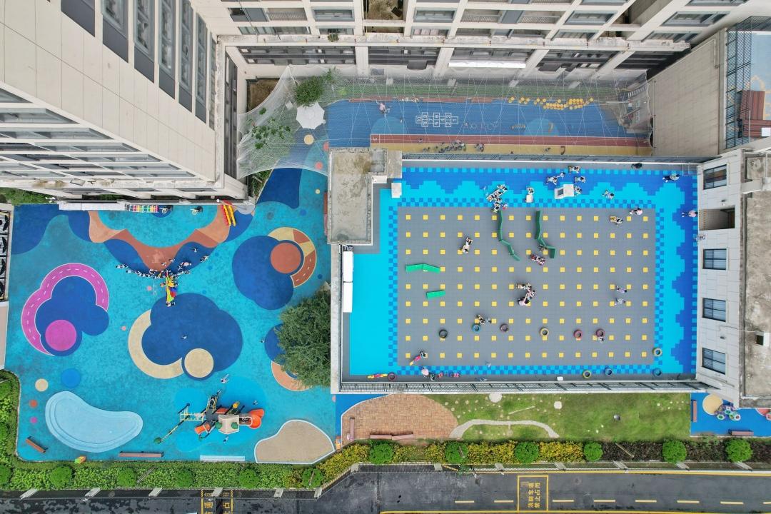 记者在现场看到,幼儿园提供超大运动空间,小朋友可以将玩具带到各个角落,自由发挥想象力和创造力。