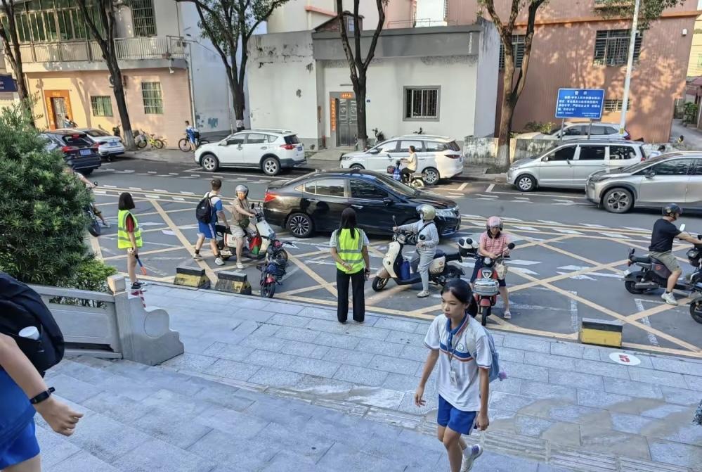 启动仪式后,家长志愿者随即在学校周边以及门口的道路上开始维护交通安全秩序,护送学生安全穿越道路。