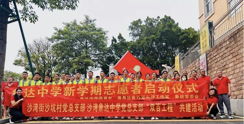暑往秋至,新程开启。又到新学期开学时,9月2日,广州市番禺区沙湾象达中学家委会举行新学期志愿者启动仪式暨“双百工程”共建活动,在新学期到来之际,欢迎初一年级新同学,学校家长志愿者又开始新一轮的轮流“上岗”,每天在学生上下学时间段共同维护学校周边的交通安全秩序。这是该校连续8年在新学期举行志愿者启动仪式。
