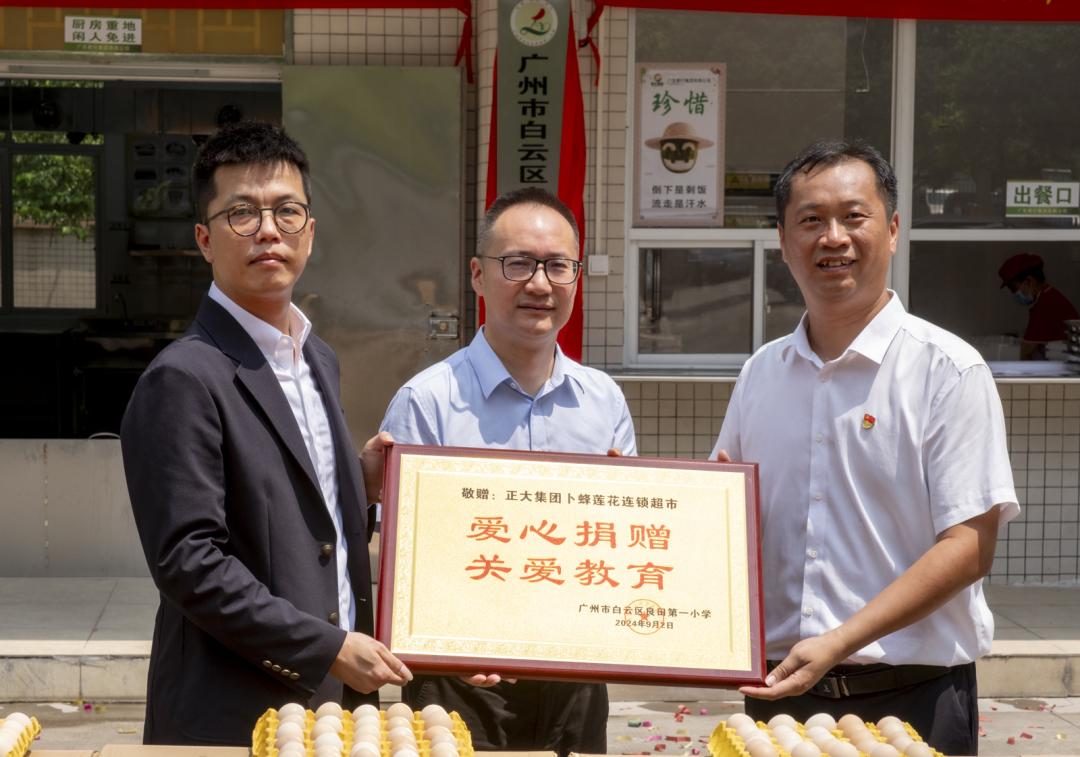 依托“1+3”镇街结对互促机制,三元里街人大代表积极联系爱心企业卜蜂莲花连锁超市,当天向良田一小捐赠100箱共计3.6万枚鸡蛋,为师生们提供营养支持。