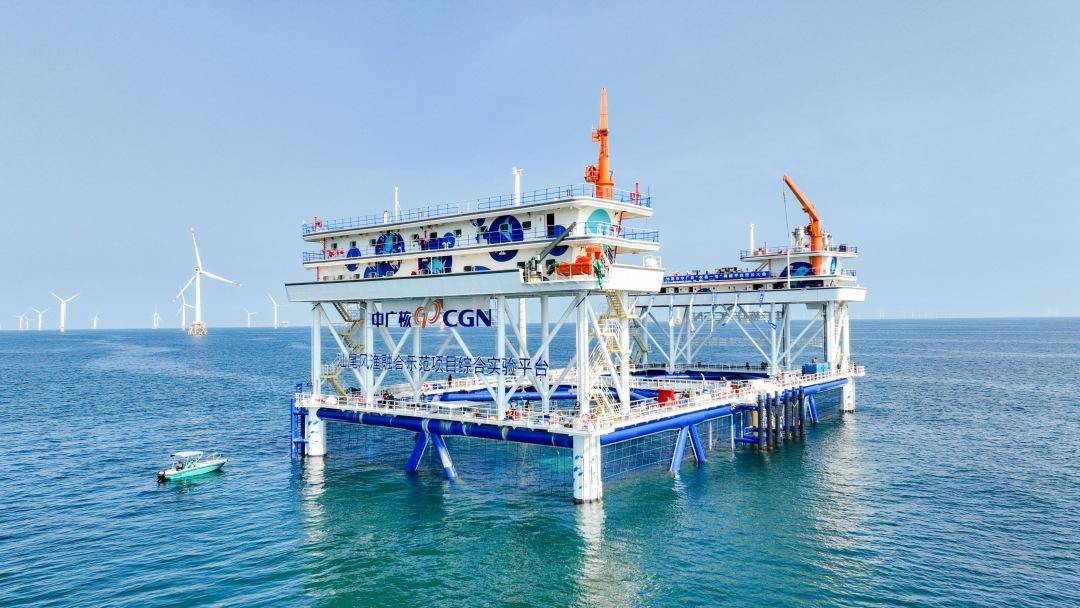 9月4日,全球单体最大抗台型风渔融合网箱平台——中国广核集团有限公司“伏羲一号”在广东汕尾建成投运,并完成首批养殖鱼苗投放。项目投产后,预计年产值可达5400万元,对于我国“海上风电+海洋牧场”产业融合发展具有重要示范意义。