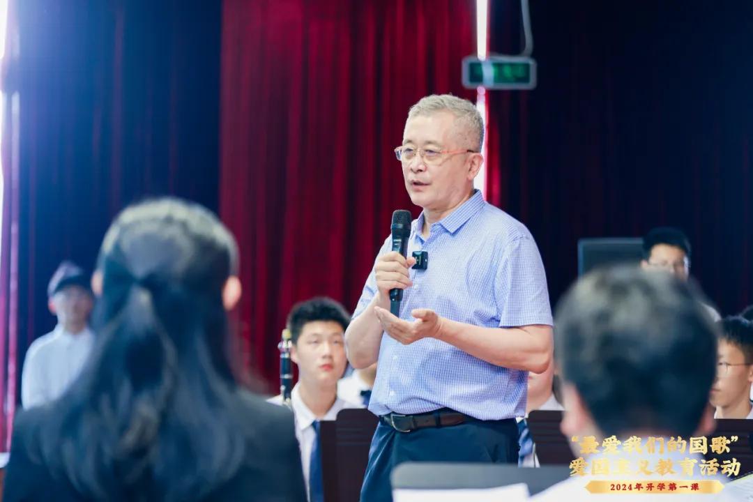 9月3日下午,在广州市委宣传部的指导下,黄埔区委宣传部携手黄埔区教育局邀请国家一级指挥、中国人民解放军军乐团原团长、音乐总监于海老师,以“最爱我们的国歌”为主题举办黄埔区2024年开学第一课。