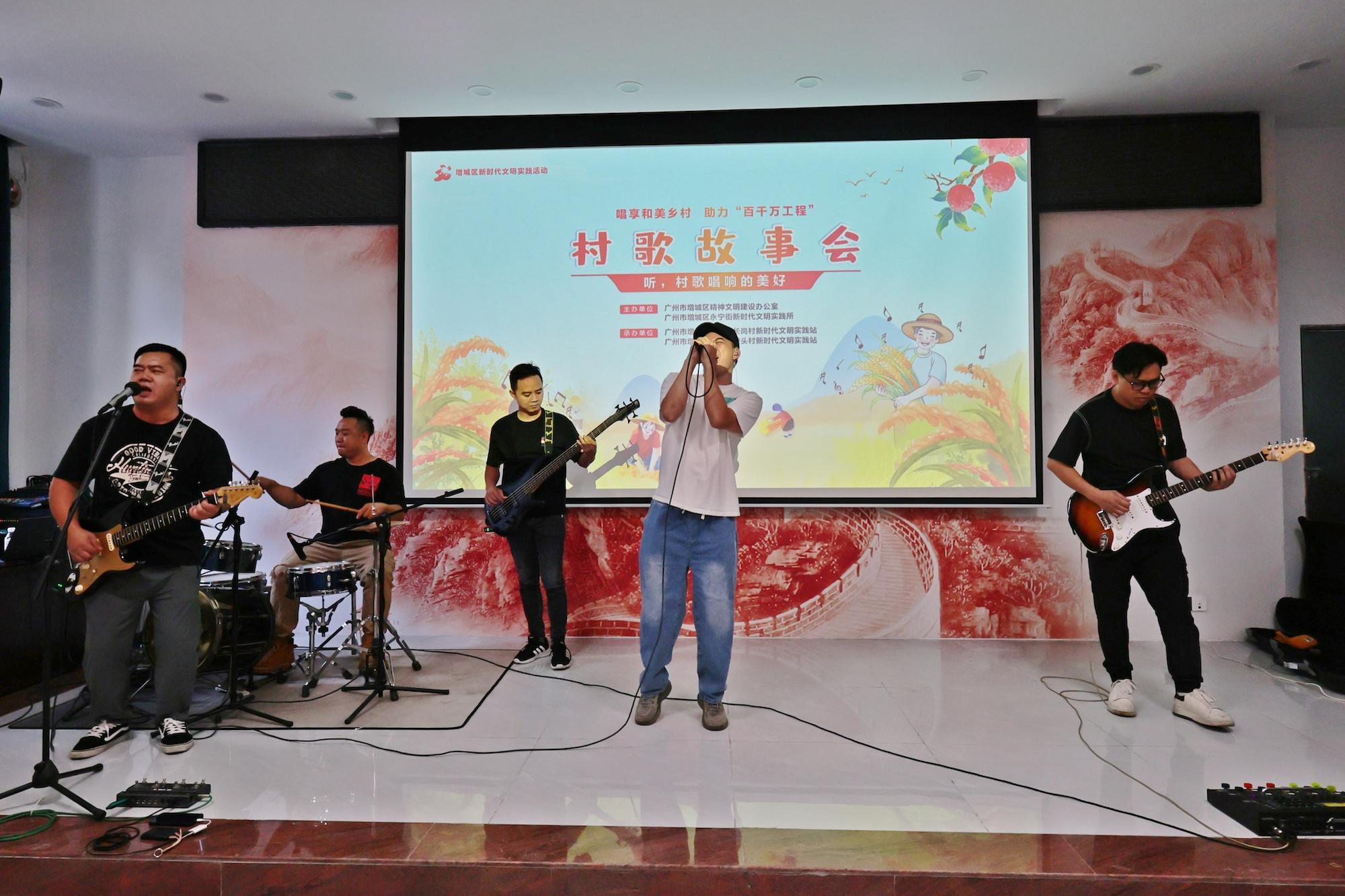 “有个美丽的地方,她叫长岗,灯火阑珊中映出我们的理想。”活动现场,Countrymen乐队激情澎湃的演唱为传统村歌注入了流行元素,让“泥土味儿”的村歌焕发出新活力与时尚感,唱出了村民和来穗人员对乡村发展的共同憧憬,用音符交织出一幅幅城乡融合发展的美丽画卷。