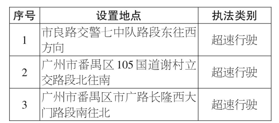 近日,广州市公安局交通警察支队番禺大队发布信息,为进一步加强道路交通安全管理,规范道路交通通行秩序,保障人民群众的生命财产安全,交警部门即将启用3套测速交通技术监控设备,根据《中华人民共和国道路交通安全法》《道路交通安全违法行为处理程序规定》(公安部第157号令)等有关法律法规规定,交警部门现向社会公布。