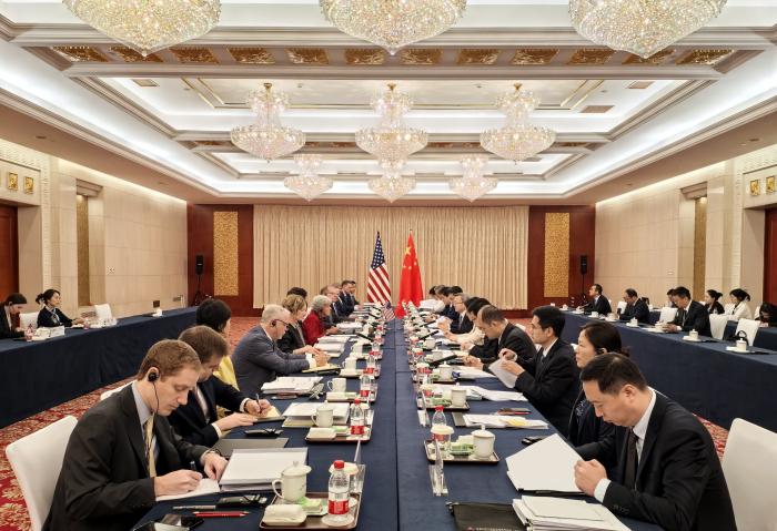 9月7日,商务部国际贸易谈判代表兼副部长王受文与美国商务部副部长拉戈在天津共同主持召开中美商贸工作组第二次副部长级会议。双方围绕落实两国元首旧金山会晤重要共识,就各自关心的政策问题以及两国工商界提出的具体商业问题进行专业、理性、务实的沟通。中央网信办、工业和信息化部、财政部、国家医保局、国家药监局等部门代表参会。