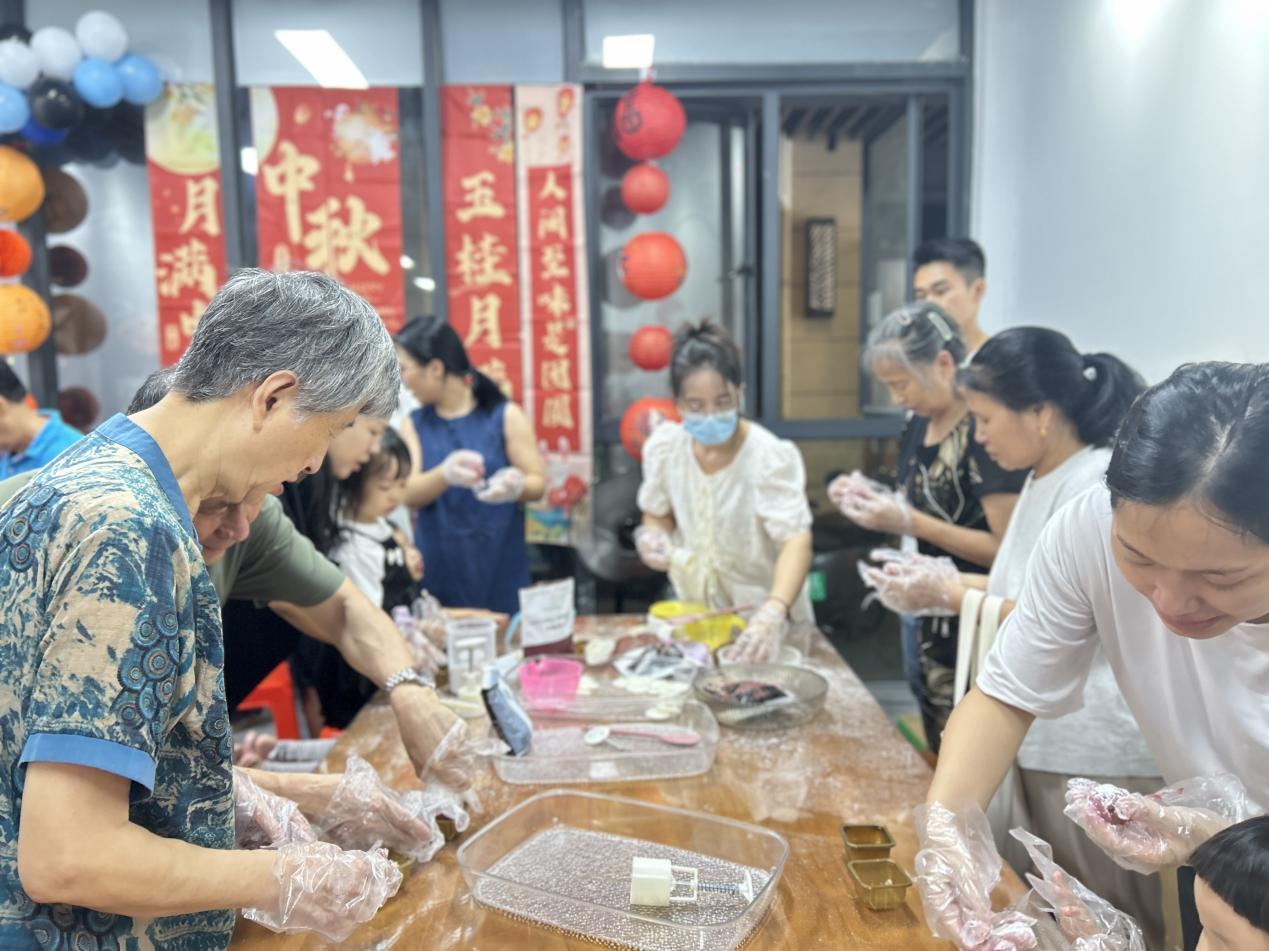 活动当天,社区居民在邻里中心包月饼、跳舞。信息时报记者 李龙 摄