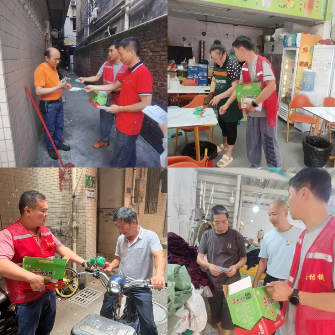按照南村镇防控工作部署,实施分村居包干督导机制。9月7日、8日,镇全体工作人员下沉村(居)、深入一线,紧盯积水清除和成蚊消杀成效,坚决拔除防控“黑点”。各村(居)委干部、工作人员及党员志愿者,积极参与防控行动,上门入户摸排住户种植水生植物情况,帮助群众清理房前屋后的积水容器、花盆等蚊媒孳生地,并为群众送上防蚊片,做好做足登革热各项防控措施。