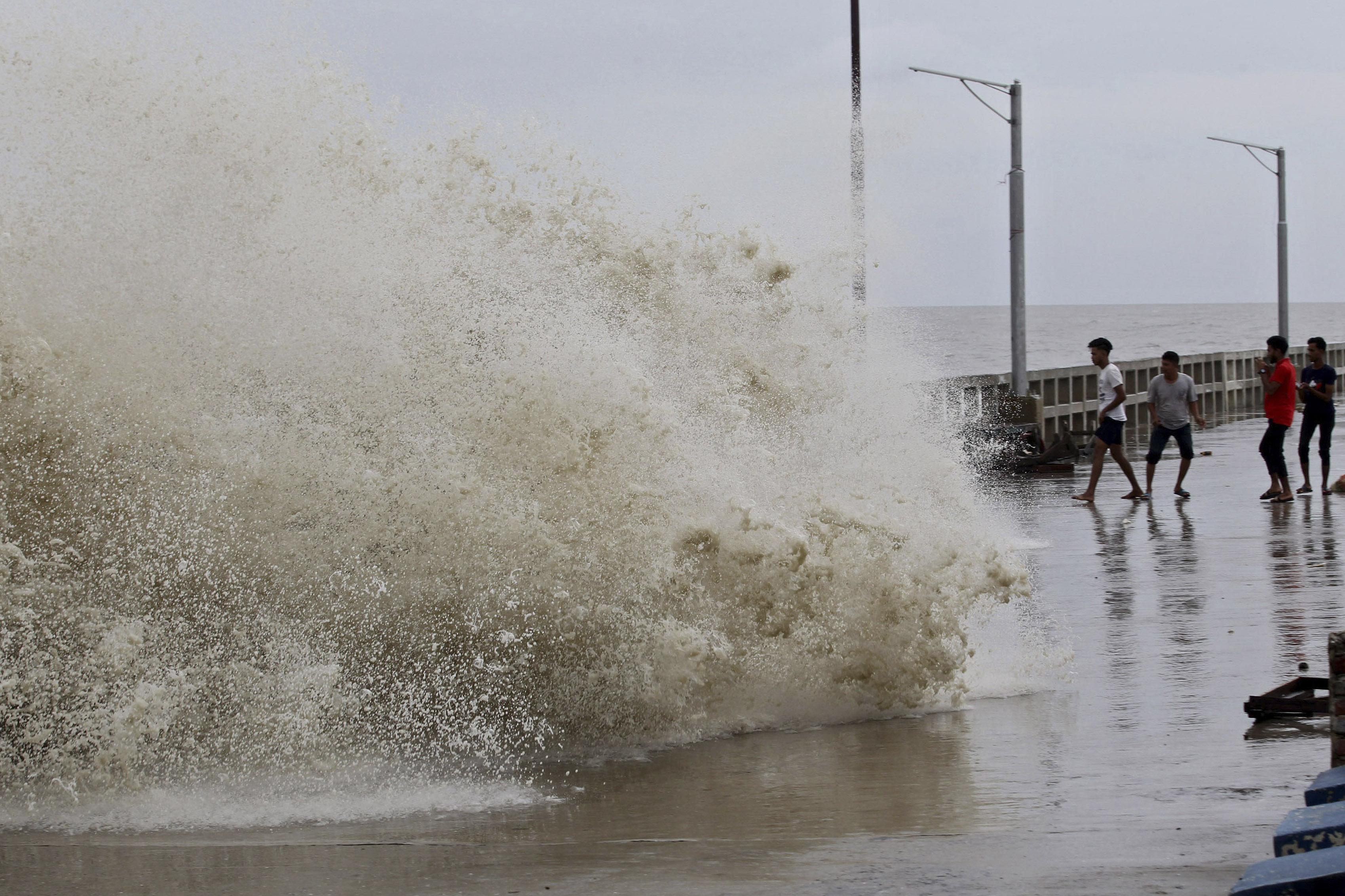 2020年5月20日,海浪拍击孟加拉国吉大港的海岸。特强气旋风暴“安攀”当日登陆孟加拉湾沿海地区。新华社发