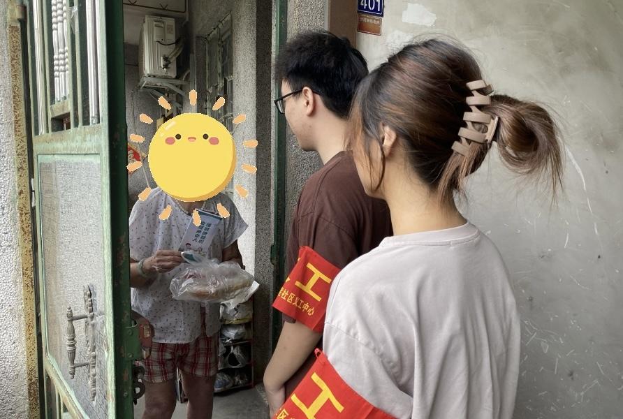 紫坭社区内有一位独居老人,因不便下楼取餐,党员和志愿者将午餐送到长者家中,长者手里拿着温热的饭菜,发出连声称赞。