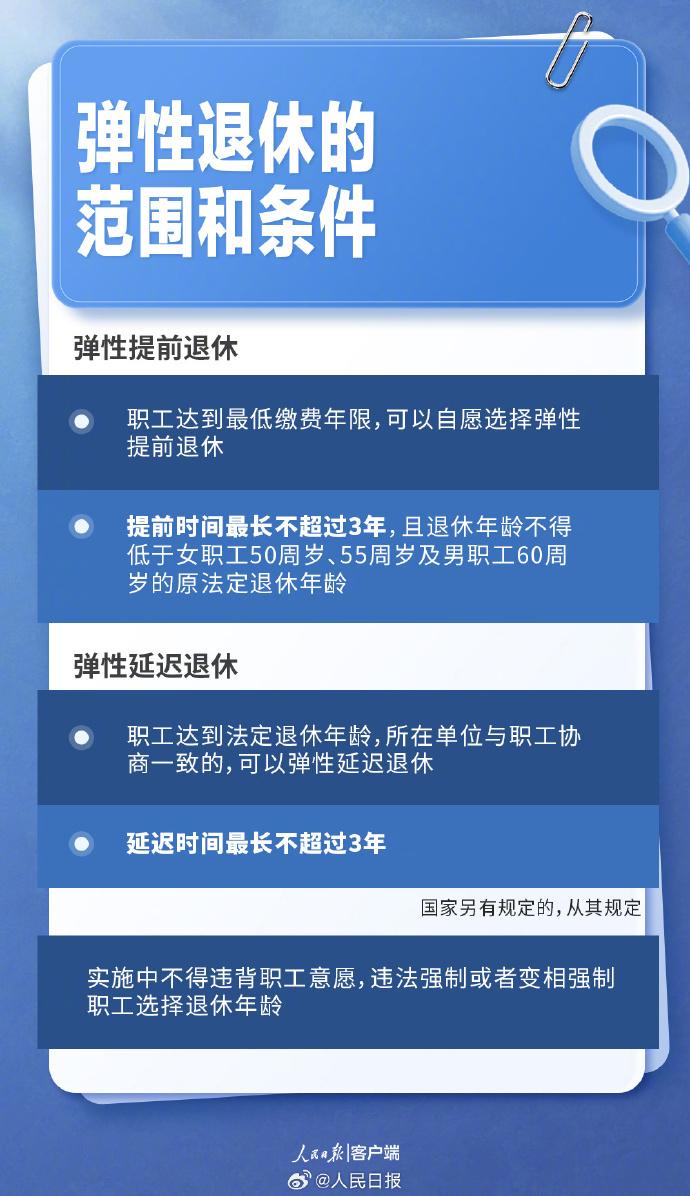 ●充分尊重职工意愿,可以在一定条件下选择弹性提前或弹性延迟退休,最长不超过3年,且不得低于原法定退休年龄。