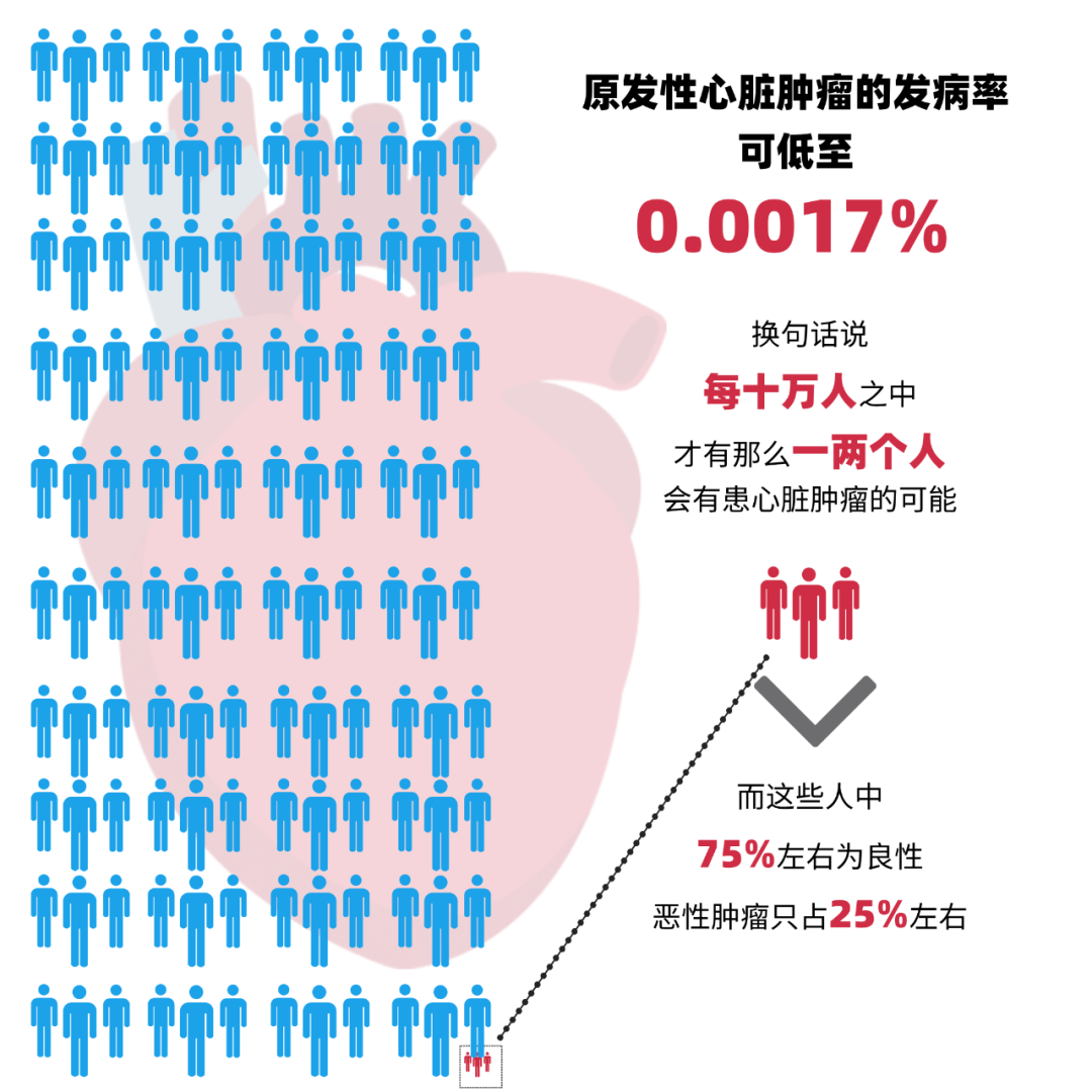 心脏恶性肿瘤中,最常见的两种类型是血管性肉瘤及横纹肌肉瘤。得了这两种肿瘤的患者,其存活率极低,并且转移较早,通常情况下,这两种肿瘤一经发现的时候就已经转移到肺、肝脏和脑等部位了,如果不经手术迅速切除,90%的患者都会在诊断后9—12个月内死亡。 当然,另外一方面,其他组织器官患的肿瘤也可能会转移到心脏“生根发芽”,这就叫做转移瘤。心脏中最常见就是黑色素瘤转移到心脏中的转移瘤,约占心脏转移瘤的50%—70%。 尽管心脏肿瘤是一种少见的疾病,但对于患者来说,早期诊断和治疗至关重要。定期体检和注意不明原因的心脏症状可以帮助早期发现潜在的心脏问题,从而及时采取必要的治疗措施。 心脏肿瘤患者通常会呼吸困难,心脏周围出现区域性疼痛,易疲劳胸闷,恶心、发烧、体重减轻、盗汗等一系列非特异性症状。 这些症状和其他心脏疾病引发的症状类似,因此,给心脏肿瘤的有效诊断带来了困难。 治疗方面,由于大多数心脏肿瘤是良性的,因此常通过外科手术进行治疗。 心脏超声是诊断心脏肿瘤的首选方法,它可以清晰地显示肿瘤的位置、大小、形态和活动情况。医生可能会进一步通过心脏核磁、CT扫描等检查,来获得更详细的心脏结构信息,有助于进一步明确肿瘤的特征。 对 于一些复杂的病例,心血管造影可以更准确地评估心脏的血液供应情况,来评估其对心脏功能的影响。最终,通过手术切除肿瘤组织进行病理分析,是确诊肿瘤性质的“金标准”。 一旦发现,建议及时就医,以便进行适当检查和治疗。心脏肿瘤的预后取决于肿瘤的类型和治疗的效果,良性肿瘤通常有很好的预后,特别是在完全切除后,可以达到根治的效果。 恶性肿瘤的预后则效果不一,但通过早期发现和治疗,患者可延长寿命,提高生活质量。 心脏发生癌症的比例低,但心脏病的风险却很高,目前心血管疾病已经超越癌症成为“头号杀手”。 肥胖,一方面,会加重心脏的负担,增加血栓、动脉粥样硬化的风险,进而导致冠心病、心肌梗死等;另一方面,脂肪会浸润性侵袭心脏,破坏心脏组织与功能。 研究表明: 体重增加10%,冠心病危险增加38%;体重增加20%,冠心病危险增加86%!所以,将体重指数控制(BMI)在18.5~24.9之间更好。 生活中“过劳死”的例子不在少数。劳累,会伤害心脏,容易诱发心肌梗死,更可能导致心脏衰竭。 人在过度劳累时,身体会分泌大量的肾上腺素和去甲状腺素等,可使血管痉挛,血压升高,心脏局部血液供应量减少,易诱发心血管疾病。 所以,不管是工作还是学习,一定要注意劳逸结合,保证充足的睡眠,少熬夜。 激动时,会使人体内肾上腺激素的分泌发生变化,从而导致心脏跳动过速,增加心脏负担。