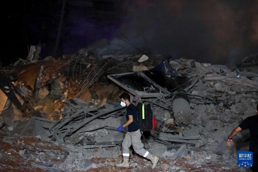 9月27日,救援人员在黎巴嫩首都贝鲁特南郊以军空袭现场工作。新华社发(比拉尔·贾维希摄)