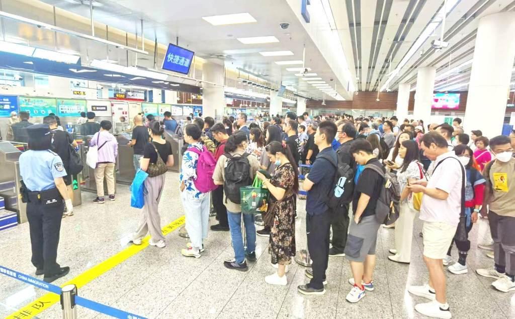 国庆节期间,皇岗边检站根据国家移民管理局部署要求,坚持以人民为中心的发展思想,全面提升防范化解重大风险隐患能力,持续优化边检管理服务,科学勤务组织,加大移动查验终端等先进查验设备投入,提升通关效率;强化客流预测研判,及时发布“两公布一提示”,引导旅客合理安排行程,错峰出行;统筹实施警力支援执勤联动机制,提前加开、开足、开满查验通道,确保中外旅客顺畅通关;密切与港方联络协调及驻地相关部门信息互通,共同应对瞬时客流高峰,确保口岸安全无虞;增派前巡警力加强引导,在特别通道、快捷通道区域竭诚为老、幼、病、残、孕等特殊人群提供暖心服务与人文关怀。