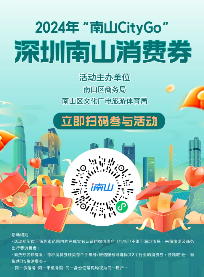“南山CityGo”消费券又来了,今晚8点,持续76小时!每人可领3张!使用时间为10月10日-16日!