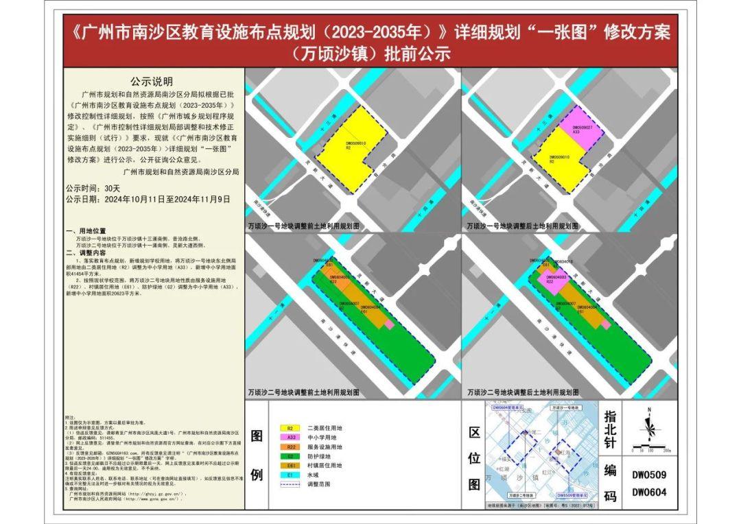 10月11日,广州市规划和自然资源局官网发布了《广州市南沙区教育设施布点规划(2023-2035年)》详细规划“一张图”修改方案。