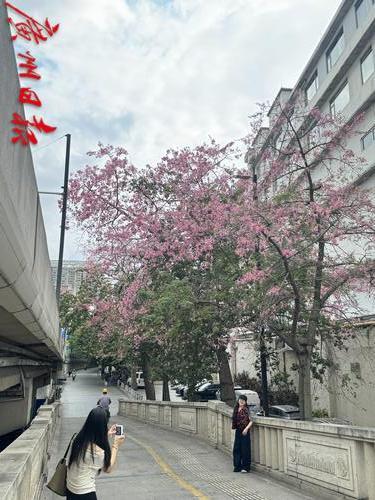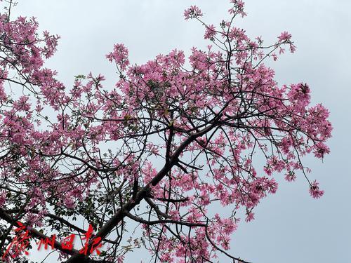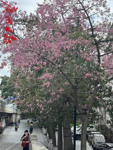 10月14日,广州人民桥旁的美丽异木棉花开,满树粉红,吸引市民拍摄“打卡”。
