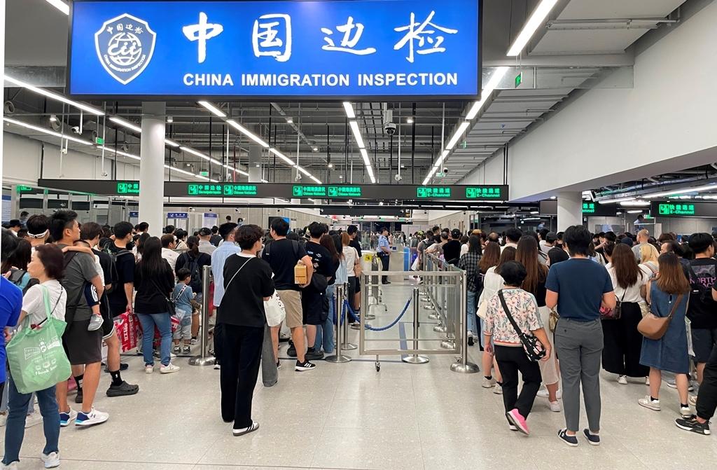 据皇岗边检站有关负责人介绍,今年香港地区重阳节公众假期紧接周末形成了3天小长假,又恰逢136届中国进出口商品交易会(广交会)将于10月15日至11月4日在广州分三期举办,连日来,皇岗、福田口岸持续迎来入出境客流双向高峰攀升态势,折射出深港联结更加密切频繁,粤港澳大湾区融合发展日趋充满活力。